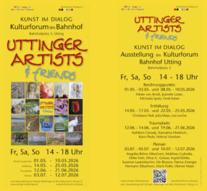 Über Wochen und Monate hinweg verwandelt sich das Kulturforum Utting in einen Ort lebendiger Begegnung. Unter dem Titel „Kunst im Dialog“ treffen sich befreundete Künstlerinnen und Künstler, um ihre Werke, teils durch die inspirierende Begegnung entstanden, sichtbar zu machen –